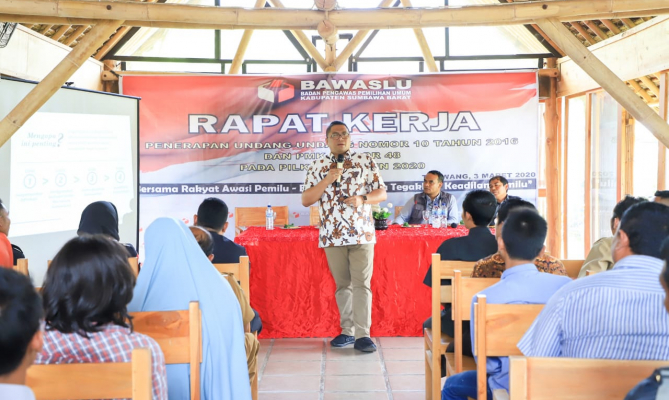 Hal itu disampaikan pada kegiatan Rapat Kerja Penerapan Undang-Undang Nomor 10 Tahun 201 tentang Pemilihan Gubernur, Bupati dan Walikota di Kabupaten Sumbawa Barat, Provinsi Nusa Tenggara Barat, Selasa (3/3/2020). Firzt, membuat sebanyak 15 kompetensi yang harus dilakukan oleh Panwascam.