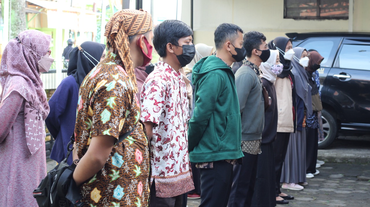 Peserta SKPP mengikuti pembekalan pemberangkatan sekolah dasar di halaman kantor Bawaslu Purworejo, pada Rabu (23/9/2021)