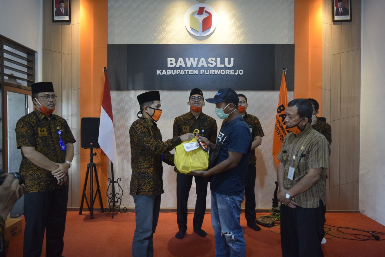 Setelah kegiatan seremoni peringatan HUT Bawaslu di Ruang Sidang Nurhadi Bawaslu Purworejo, dilanjutkan dengan kegiatan pembagian sembako dan masker di Kabupaten Purworejo. Ada tiga tim yang dibagi yang menyasar kepada warga yang rentan ekonomi karena terdampak Covid-19.