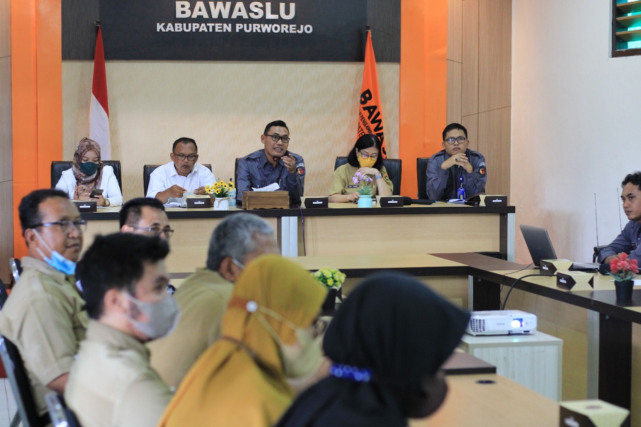 RAKOR DISEMINASI: Rapat Koordinasi Diseminasi tindaklanjut pelanggaran perundang-undangan lainnya yang diselenggaran Bawaslu Purworejo di ruang sidang Nurhadi, Senin (5/9/22).