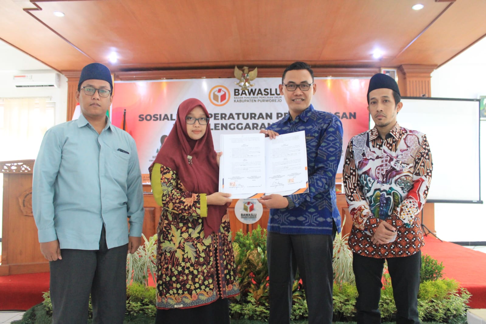 Bawaslu Purworejo pada sosialisasi tersebut juga melakukan penandatanganan nota kesepahaman (MoU) dengan STAI An Nawawi Purworejo. Ketua STAI An Nawawi Khoirunnisa S. Pd.I., M.S.I. memberikan apresiasi dan menyampikan bahwa peran civitas akademika harus memberikan nuansa yang positif dalam penyelenggaraan Pemilu, jangan sampai tragedi peralihan kekuasaan dengan pertumpahan darah seperti era Ken Arok terjadi. "Civitas Akademika harus memberikan ide dan gagasan positif dan membangun bagi kemaslahatan bangsa ini," katanya.
