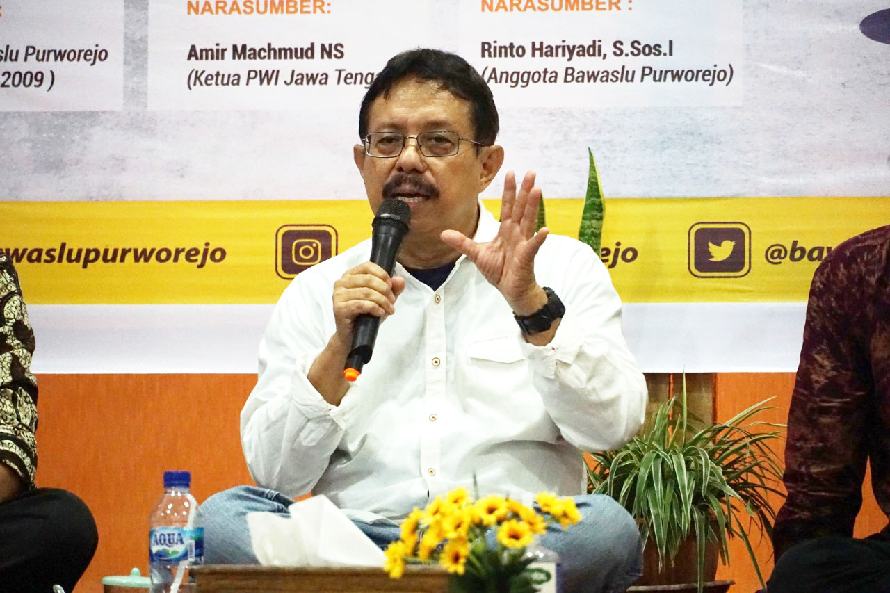 Ketua PWI Jawa Tengah Amir Machmud NS membedah Buku Mozaik Sejarah, Peran, dan Dinamika Pengawasan di Purworejo pada Selasa (9/8/2022)