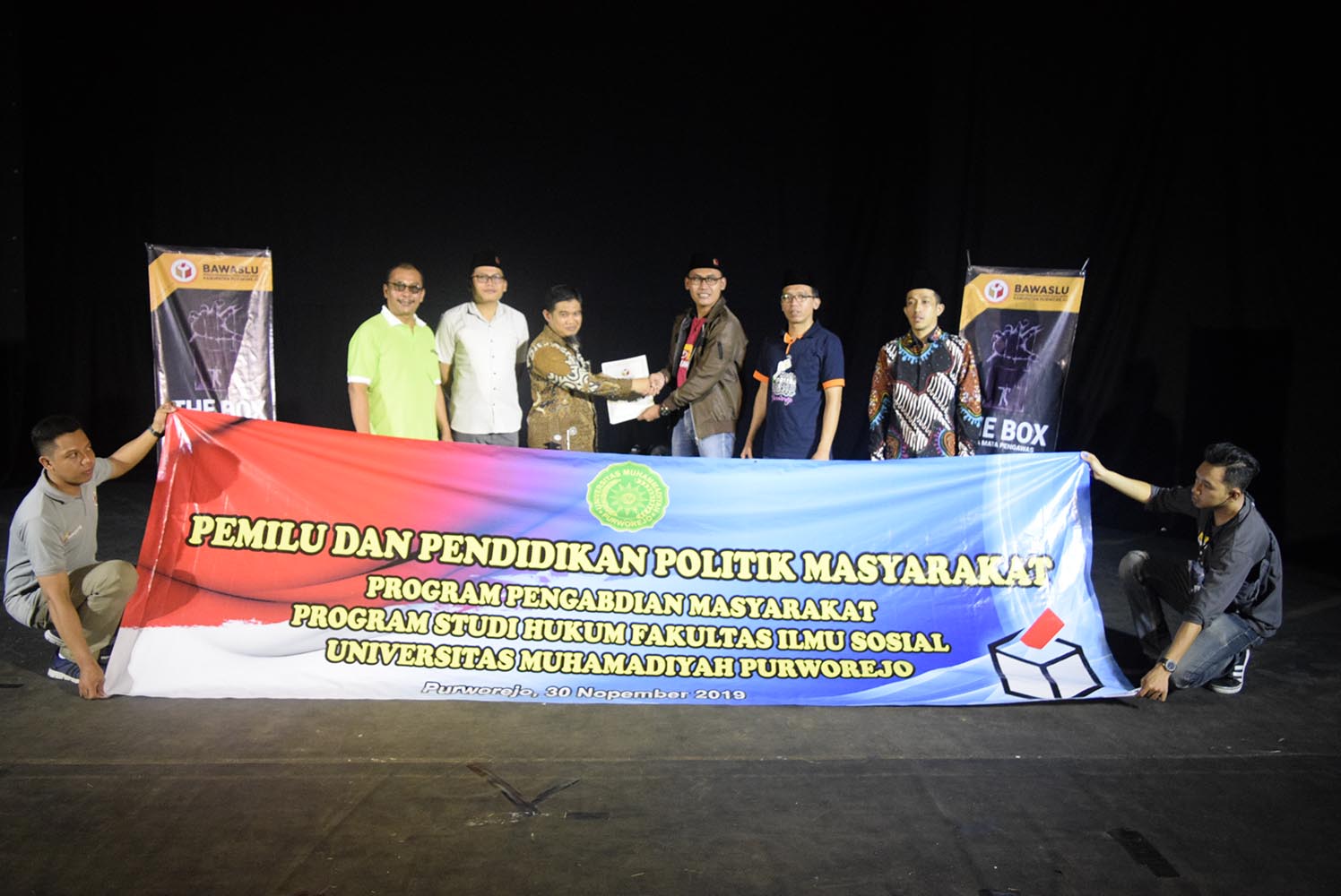 Kegiatan tersebut merupakan bagian progam sosialisasi pengawasan partisipatif kepada kelompok sasaran. Dalam kesempatan itu Bawaslu Purworejo juga menandatangani MoU pengembangan pengawasan partisipatif dengan Fakultas Ilmu Sosial UMP.