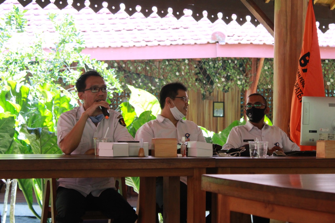 Koordinator Divisi Hukum, Humas, dan Data Informasi Rinto Hariyadi (kiri) berdiskusi bersama terkait pembuatan videografi pengawasan.