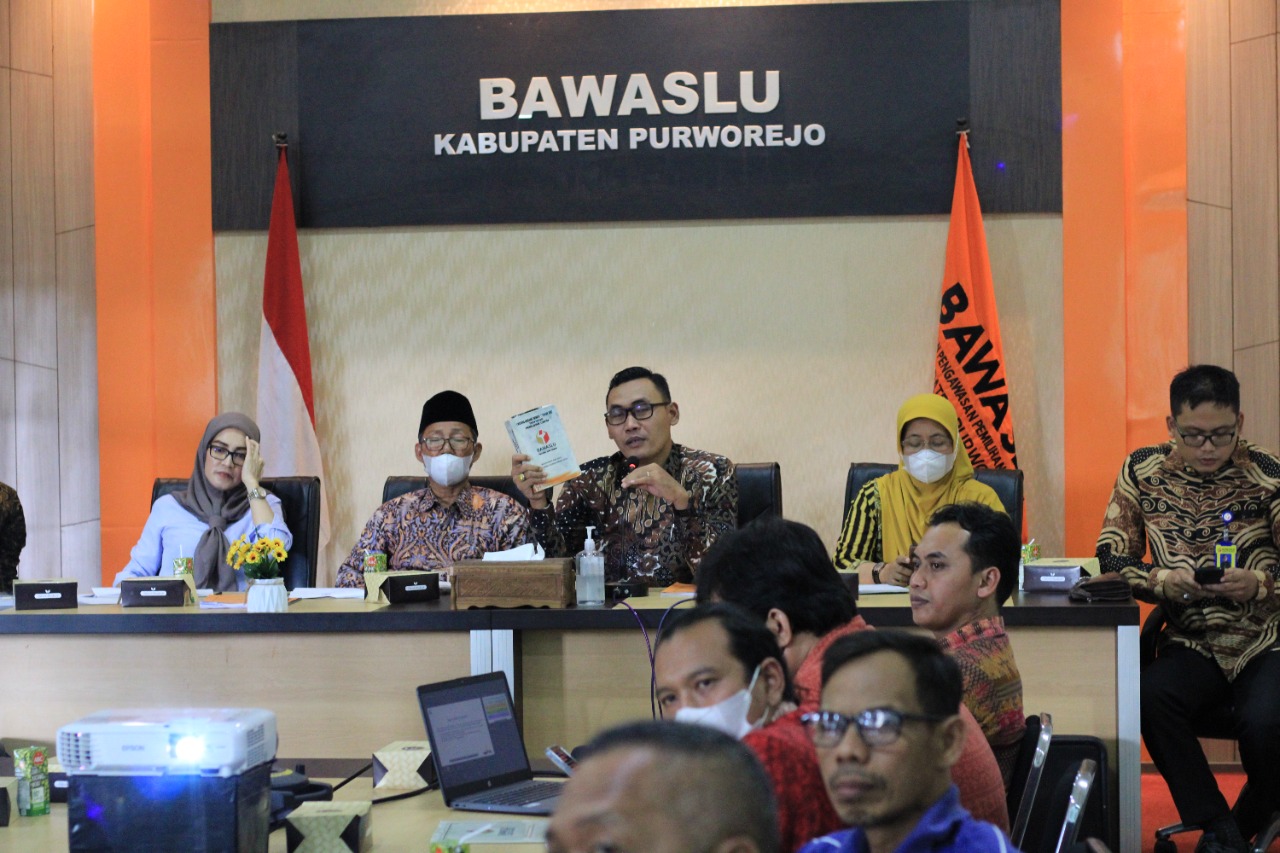 PURWOREJO - Bawaslu Kabupaten Purworejo melakukan pencegahan pelanggaran tahapan pendaftaran verifikasi dan penetapan partai politik dengan menggelar rapat koordinasi (rakor) pada Kamis (1/9/2022) di Ruang Sidang Nurhadi. Pada kegiatan tersebut Bawaslu mengundang stakeholders terkait yang diantaranya KPU Purworejo, Polres Purworejo, Kodim 0708 Purworejo, Pemda Purworejo, dan Partai politik calon peserta pemilu.