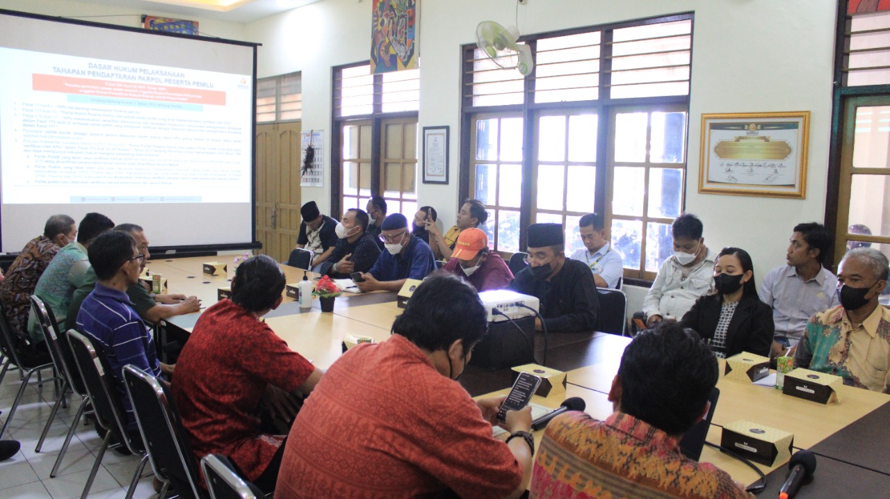 Kegiatan Rapat Koordinsi Pencegahan Pelanggaran tahapan pendaftaran verifikasi dan penetapan partai politik bersama stakeholders terkait pada Kamis (1/9/2022) di Ruang Sidang Nurhadi.