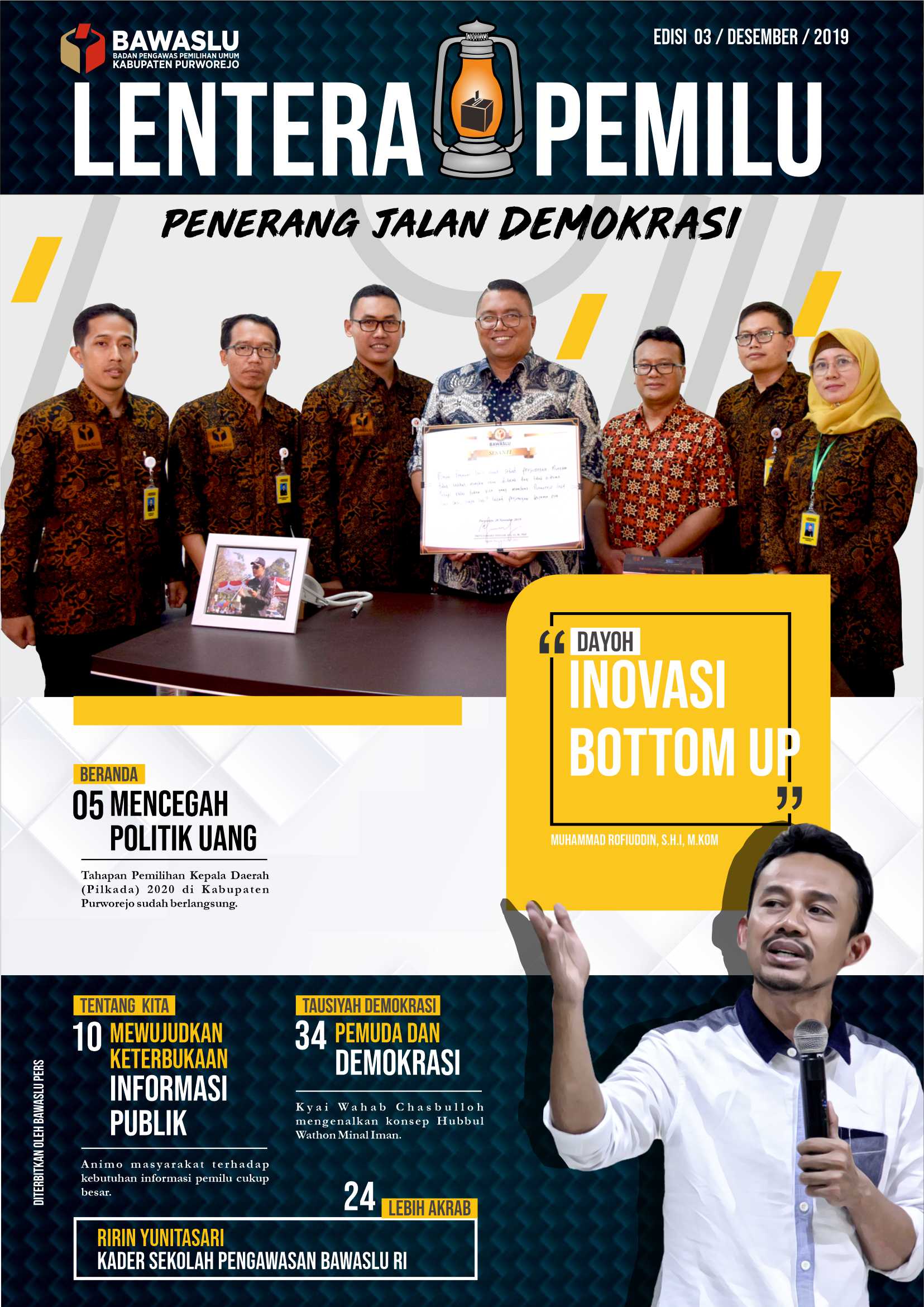 Majalah Lentera Pemilu Bawaslu Kabupaten Purworejo Edisi 03 Bulan Desember 2019. Silahkan download link dibawah untuk membaca majalah. Selamat membaca...