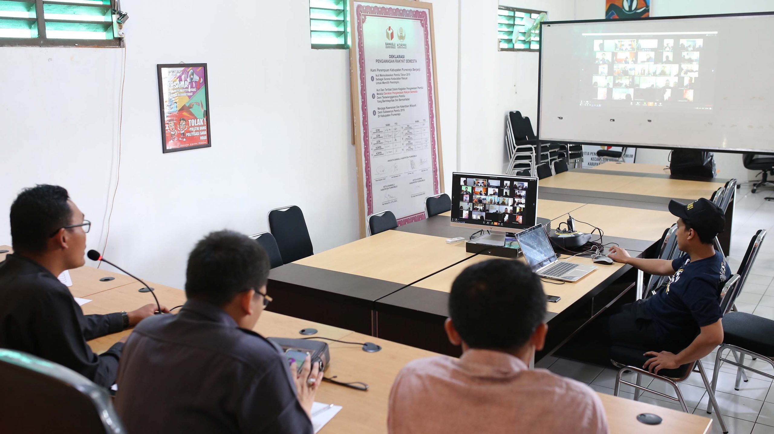 Kegiatan video teleconferrence Bawaslu Purworejo dengan Panwaslu Kecamatan