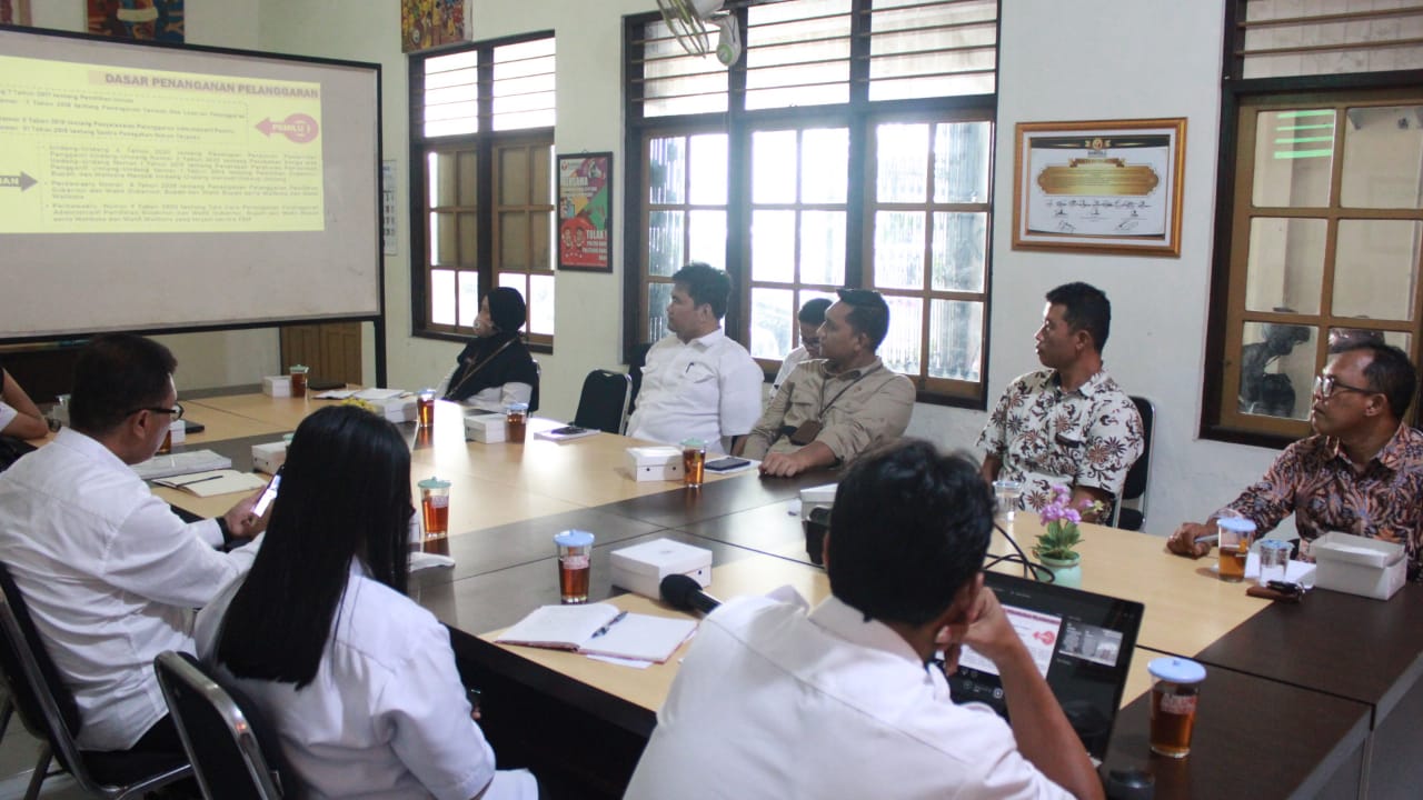 RAPAT KERJA: Bawaslu Kabupaten Purworejo menggelar rapat kerja penanganan pelanggaran dengan mengundang instansi mitra kerja di ruang sidang Nurhadi Kantor Bawaslu Purworejo, Rabu (8/6/2022)