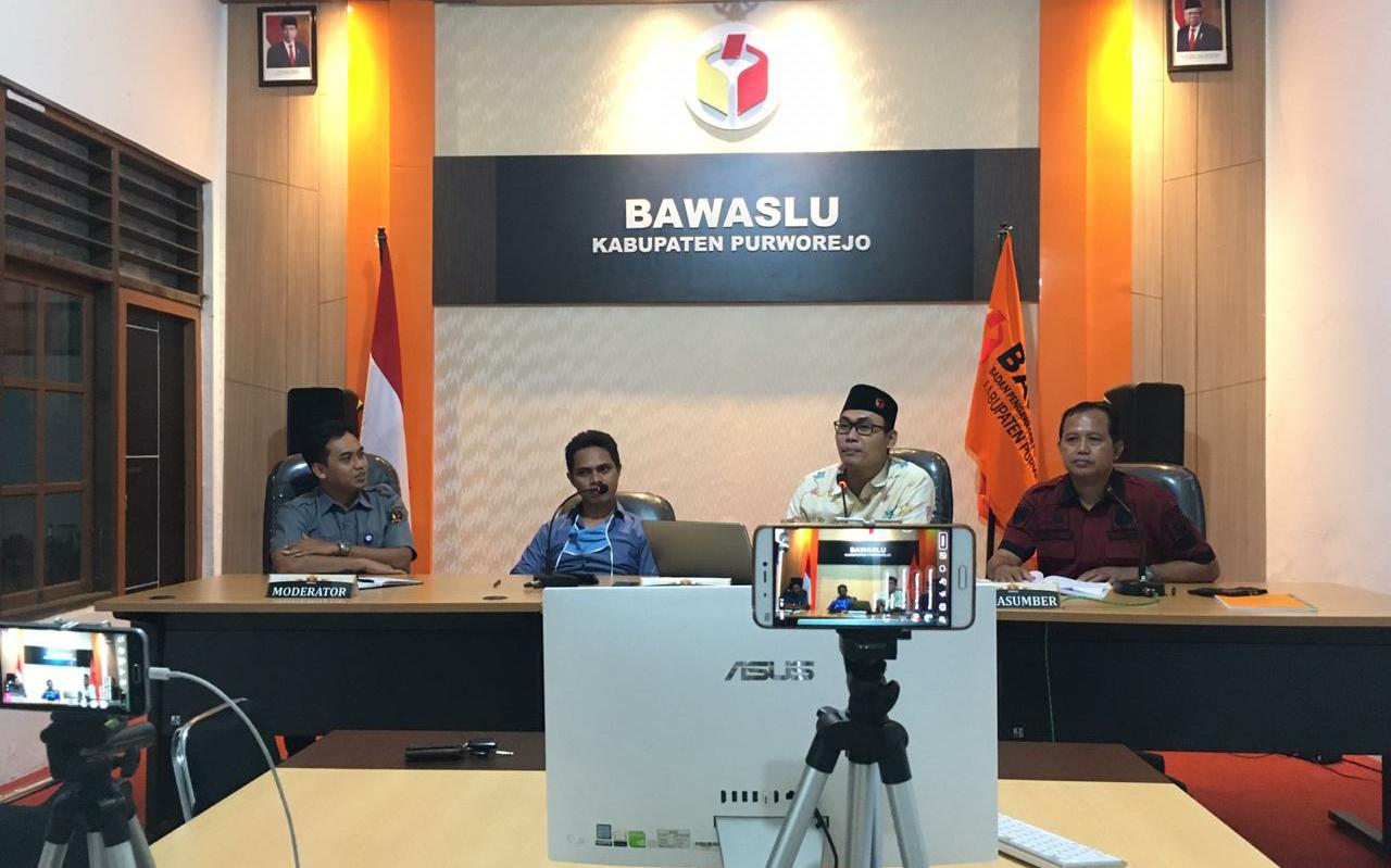 Tema yang saya sebutkan di awal itu cukup berat. Beruntung saya dipilihkan sparing partner yang sangat mumpuni. Dua anggota Sentra Penegakan Hukum Terpadu (Gakkumdu): Iptu Bruyi Rohman Wasito SH MH (Kanit II Satreskrim Polres Purworejo) dan Zaenal Abidin SH MH (Kasi Intel Kejari Purworejo). Dua penegak hukum ini sudah teruji gerak-gesitnya saat menangani dua kasus pidana pemilu 2019 lalu.