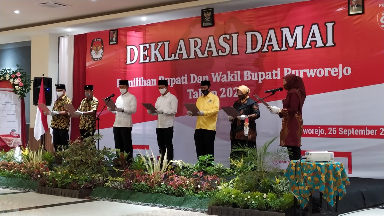 Pada deklarasi tersebut semua paslon bupati dan wakil bupati menyatakan sanggup melaksanakan kampanye dengan damai, tidak mengandung unsur fitnah, hoax, SARA dan tidak melakukan praktik politik uang.