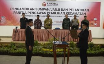 Purworejo - Bawaslu Kabupaten Purworejo melantik 48 anggota Panitia Pengawas Pemilihan Kecamatan (Pamwascam), pada Senin, 23/12/2019, di Ballroom Hotel Plaza Purworejo.