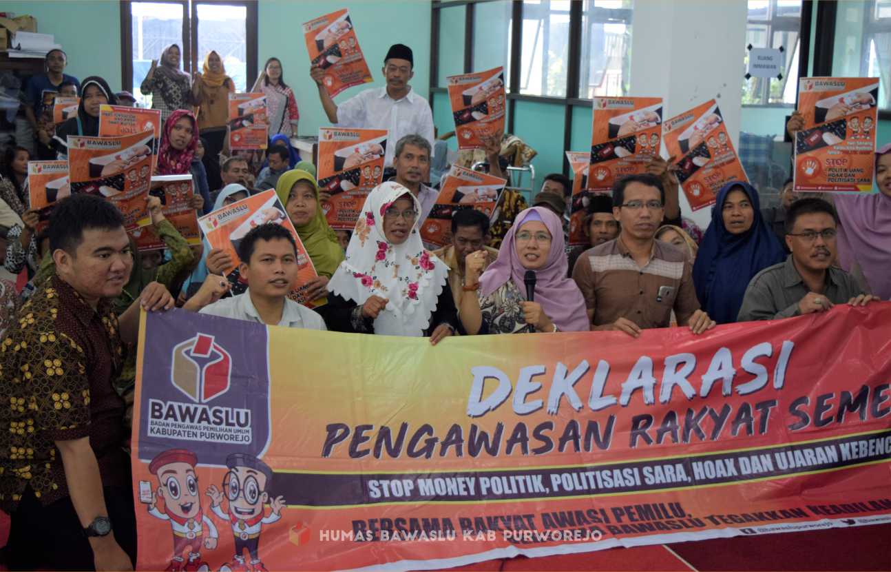 Usaha menepis semua itu dilakukan Bawaslu Kabupaten Purworejo. Merangkul seluruh rakyat untuk membumikan Bawaslu. Seluruh lapisan masyarakat digandeng untuk bisa terlibat dalam kegiatan pengawasan pemilu 2019 lalu. Rakyat diberikan edukasi agar memahami bahwa peran, tugas, dan kewenangan Bawaslu bukan sebagaimana terlabelkan selama ini. Bawaslu telah bertransformasi sebagai lembaga yang juga bertugas melakukan pencegahan pelanggaran melalui program sosialisasi pengawasan partisipatif yang didesain melalui kegiatan-kegiatan kreatif dan inovatif.