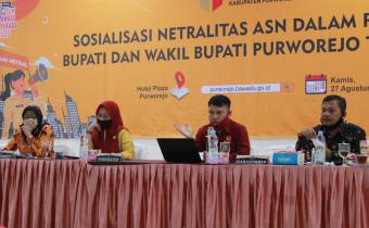 PURWOREJO - Bawaslu Kabupaten Purworejo menyelenggarakan Sosialisasi Netralitas ASN pada Pemilihan Bupati dan Wakil Bupati Purworejo tahun 2020 pada Kamis (27/8/2020) di Ballroom Hotel Plaza Purworejo.