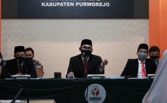 PURWOREJO - Sidang Musyawarah Terbuka Penyelesaian Sengketa Proses Pilkada 2020 di Bawaslu Purworejo kembali digelar, pada Senin (10/8/2020). Sidang dipimpin tiga Majelis Musyawarah yakni Nur Kholiq, Ali Yafie dan Rinto Hariyadi.