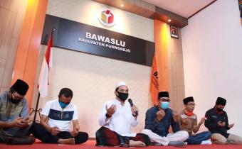 PURWOREJO - Bawaslu Kabupaten Purworejo menggelar doa bersama untuk keselamatan pengawas saat menjalankan tugas pada Jumat (19/6/2020), di Ruang Sidang Nurhadi Sekretariat Bawaslu Purworejo. Doa bersama diikuti seluruh jajaran pengawas kecamatan melalui layanan dalam jaringan aplikasi zoom.